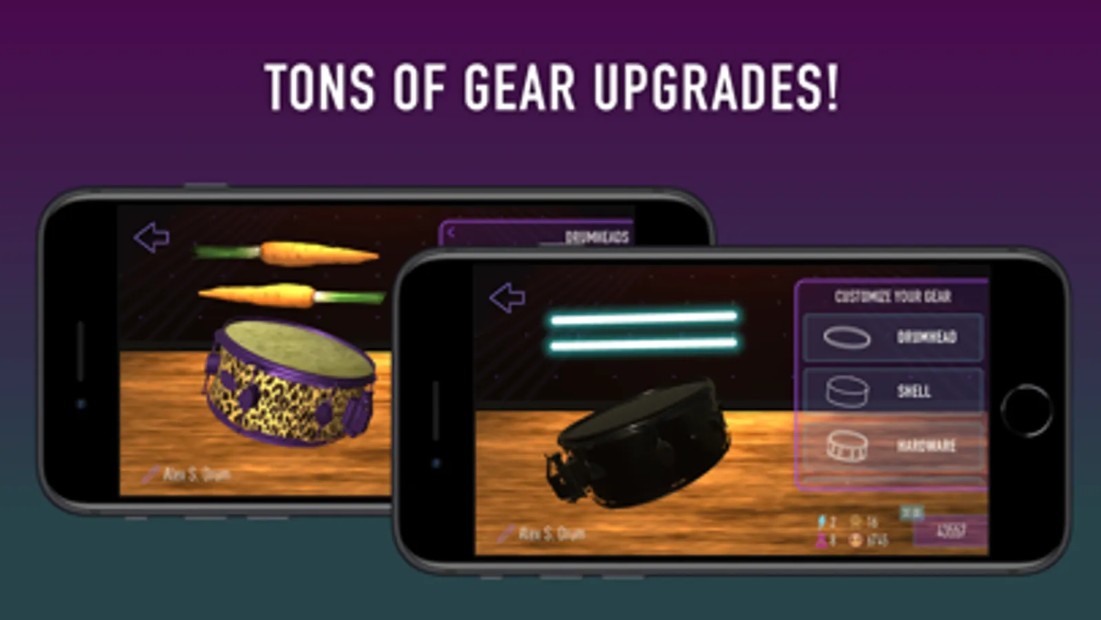 Redeem your in-game earnings for new drum gear and sounds to customize your learning experience. New gear released constantly. Fun sticks like lasers and wands, awesome custom drum heads, shells and hardware, and dozens of different sounds keep your practice fun and fresh!