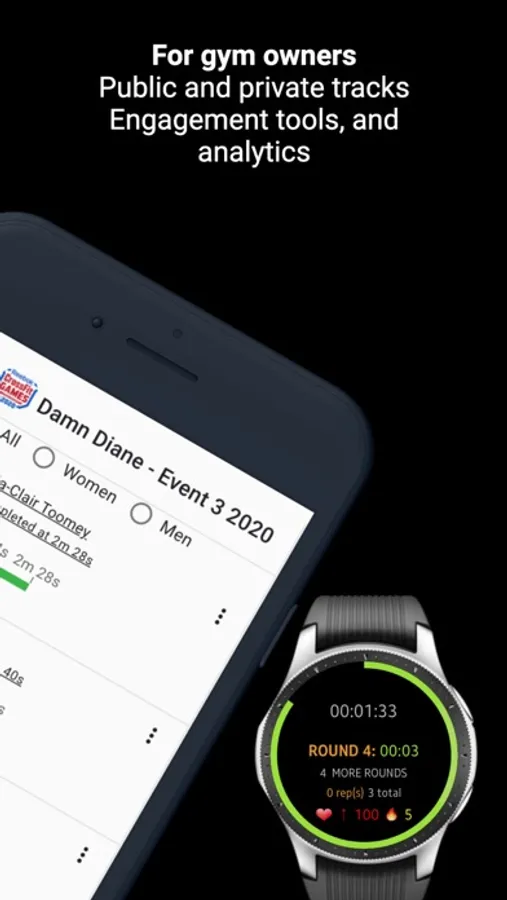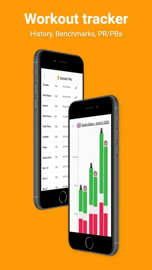 • Tracking of barbell lifts, gymnastics, cardio, and other fitness benchmarks