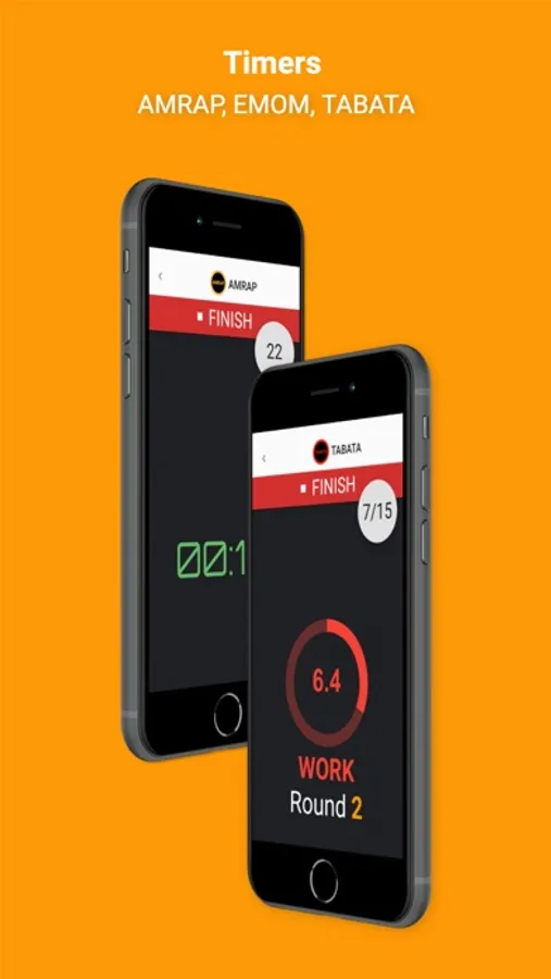 • AMRAP, For time, EMOM, TABATA, Intervals, Stopwatch timers