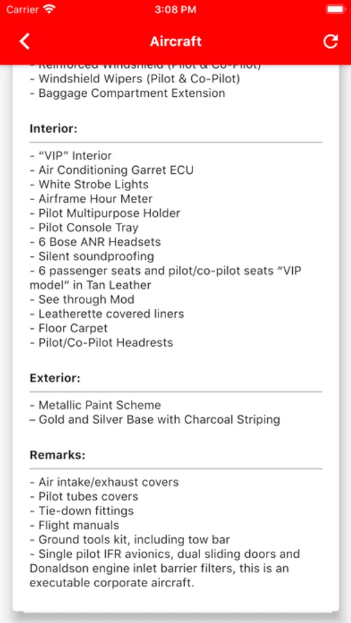 - Full description, with photos, equipment, avionics, interior, exterior and remarks.
