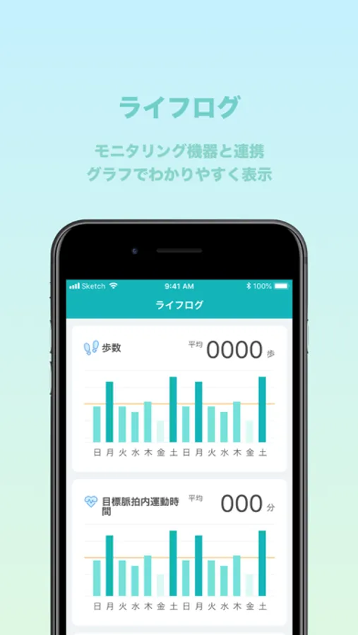 糖尿病や肥満、高血圧など、あなたの状態にあった適切な指導を行うために、iPhoneへ標準でインストールされている“ヘルスケアアプリ“と専用デバイス“Fitbit®“によって歩数や運動量、睡眠時間などのライフログデータを自動で取得します。