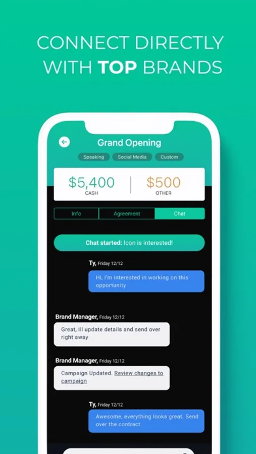 Agents can manage athlete communication and facilitate deals on behalf of their verified athletes.