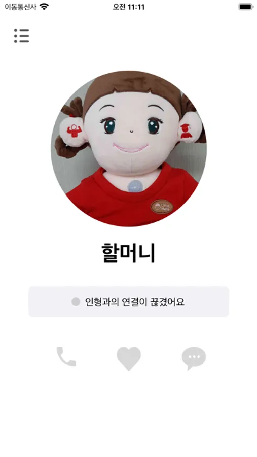 인형 사용자 혹은 그룹원에게 전화를 걸기 위해 사용