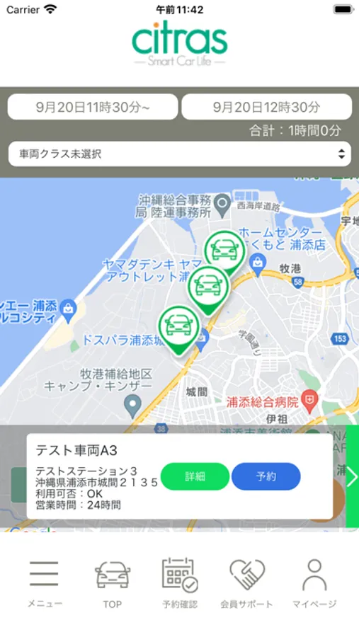アプリの地図上から近くの利用可能な車両をお選びご予約いただけます。