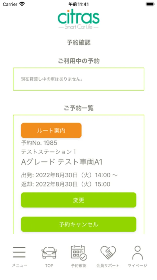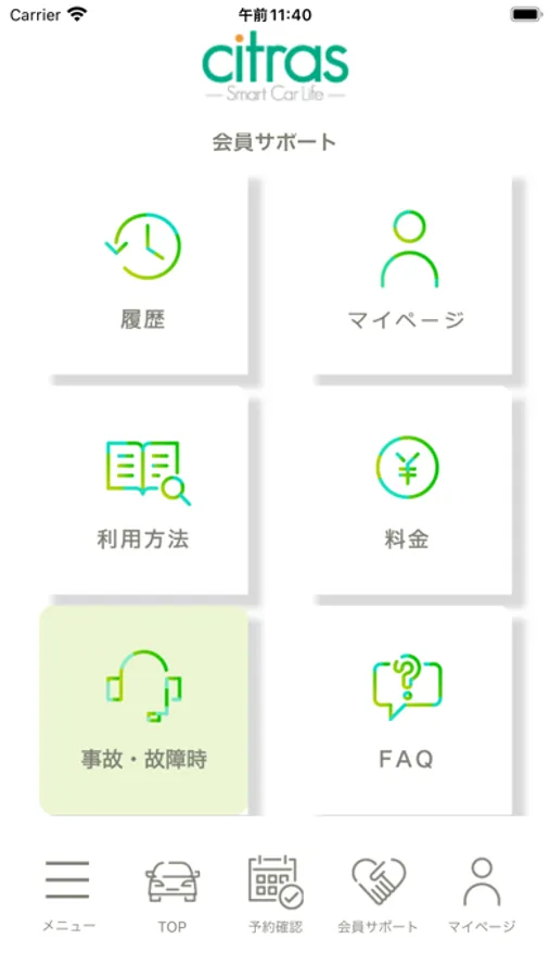 利用履歴の確認、事故・故障時の緊急連絡先の確認が行えます。