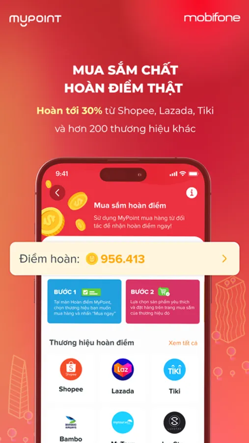 MyPoint là ứng dụng tích điểm - tiêu thật từ mọi giao dịch của bạn với một đơn vị điểm duy nhất tại 200+ thương hiệu hàng đầu và các sàn thương mại điện tử. Tải app và đăng ký để trải nghiệm ngay cuộc sống tiện lợi, thông minh và tiết kiệm hơn bạn nhé