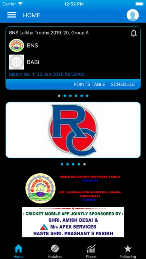 Balasinor Cricket is an app to check the cricket scores for the cricket matches organized by Shree Balasinor Navyuvak Sangh.