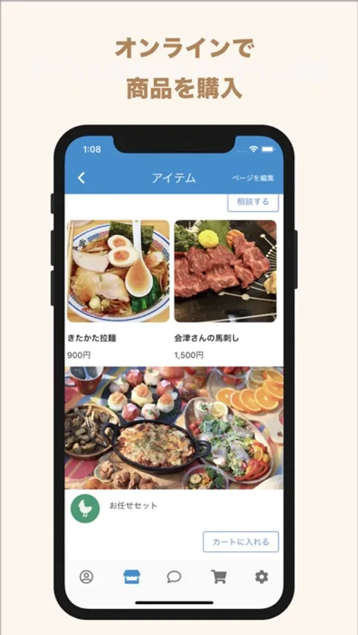 お店とチャット機能を使って商品やサービスを相談できます。相談した商品は価格を決めて、その場でクレジットカード決済で購入することができます。商品やサービスの内容を相談して変更したい時に便利です