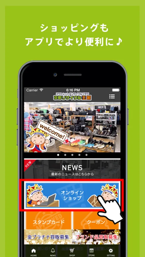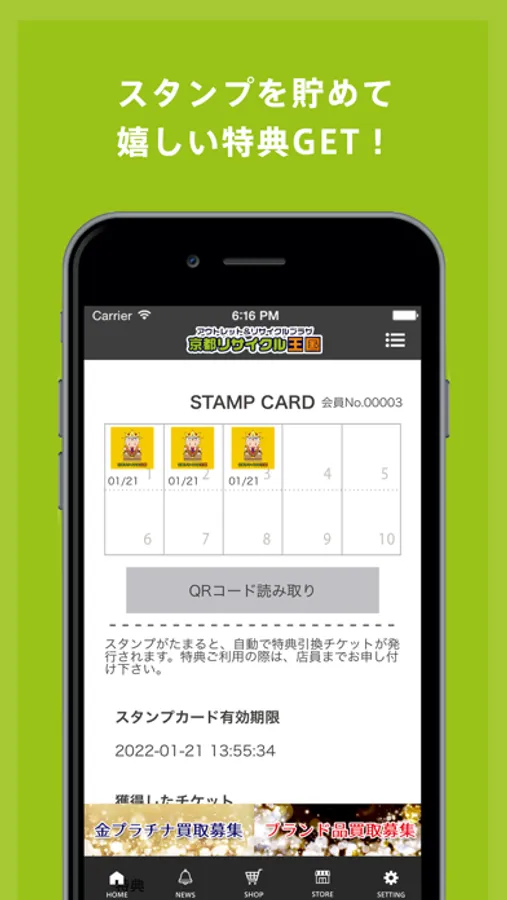 お得な情報をプッシュ通知でお知らせします。アプリの初回起動時にプッシュ通知を「ON」に設定するようにお願いします。なお、ON・OFFの設定は後からでも変更できます。