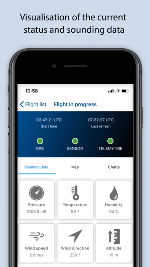 GRAWgo is the latest cloud-based solution to monitor your upper air sounding stations. Access your stations from anywhere at any time. GRAWgo allows you to always keep an eye on the status of your sounding and your current sounding data of all stations. Features like the overview of current events and push notifications (start and balloon burst detection, error detection), measurement and receiver data, status of weather messages, charts, quality of data reception, flight track view, etc. make this App the perfect companion for mobile monitoring. A further and great application possibility of GRAWgo is the local status monitoring during the ascent preparation, since you get all necessary status information during preparation and during the ascent start directly on-site.