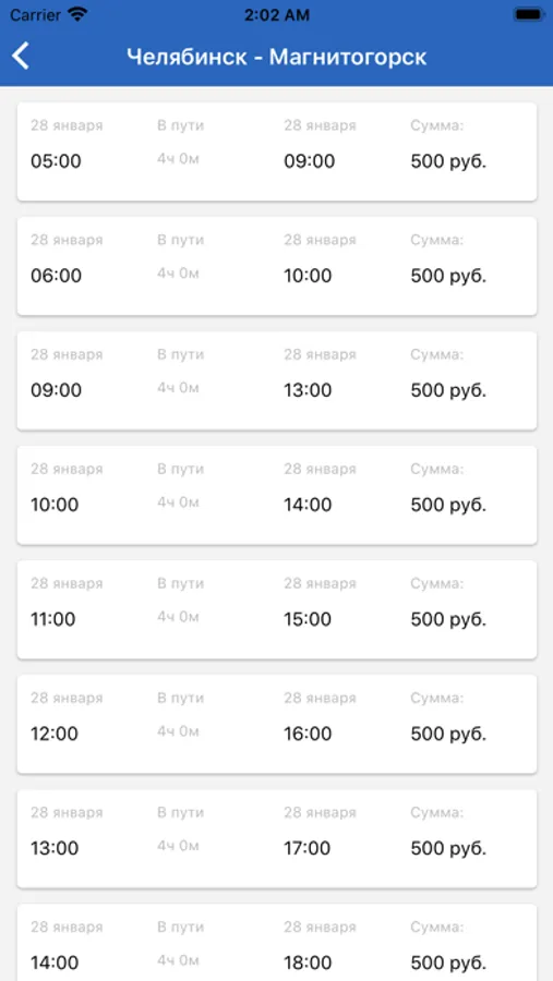 Ежедневные рейсы из Магнитогорска в Челябинск, Екатеринбург, Казань, Уфа, Костанай, Житикара, Сибай, Фершампенуаз, Банное, Абзаково, Белорецк и в обратном направлении.»