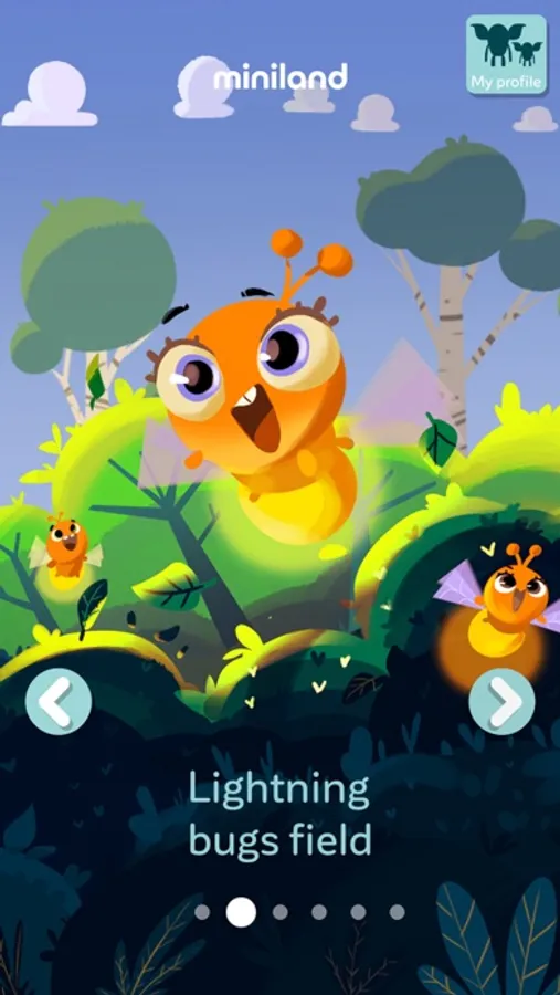 Lightning bugs field. They will have three different scenaries, day pool, night pool and the forest. This game is useful for visual and auditive skills. They will have to clic on the bees to make them explode.