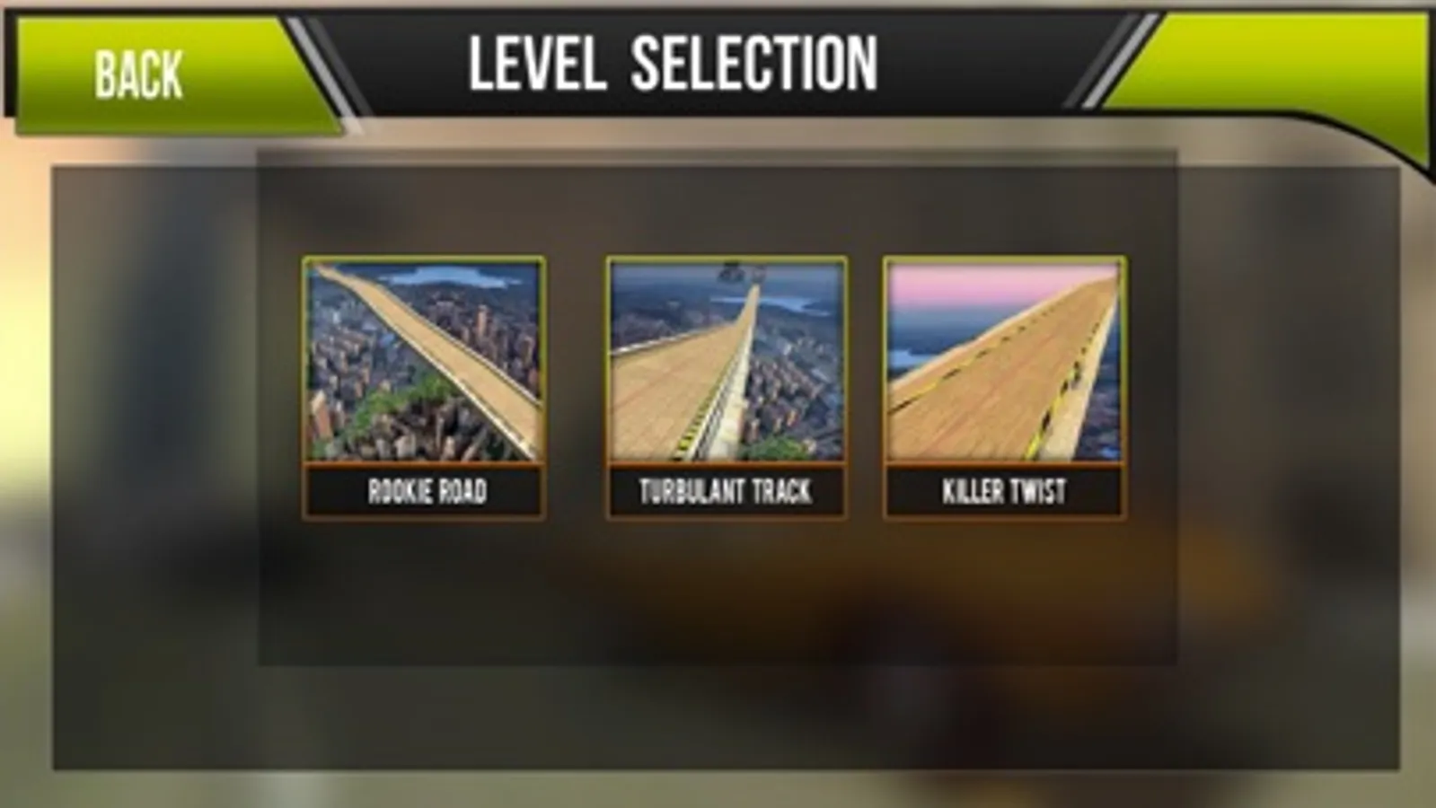 • Different Tracks and levels with Impossible Stunts, Impossible tracks, High Jumps levels, Sky High Tracks with Mega ramps and strong Curves
