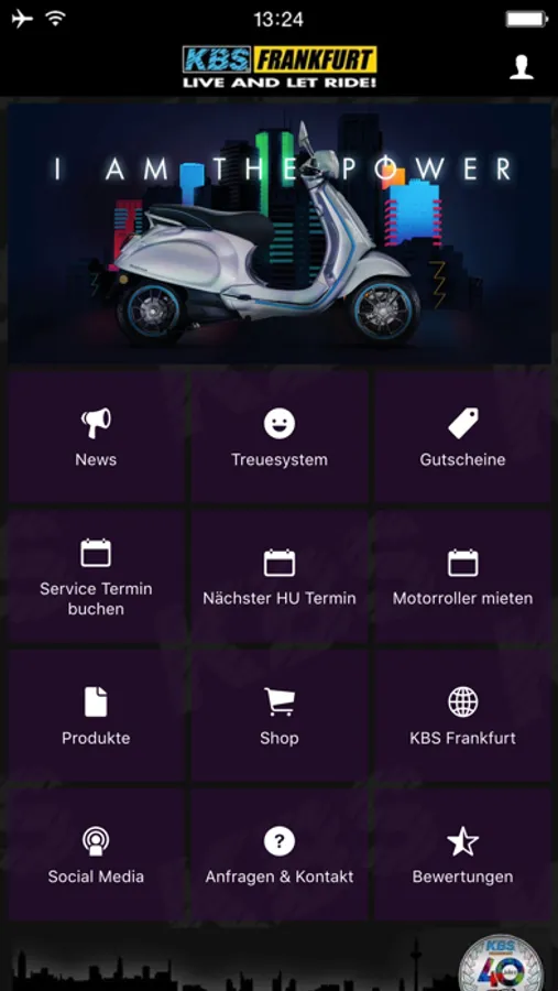 Mit dieser App sind Sie bei KBS-Frankfurt dem größten Vespa, Piaggio, Peugeot und NIU Roller/Scooter Händler im Rhein/Main Gebiet.