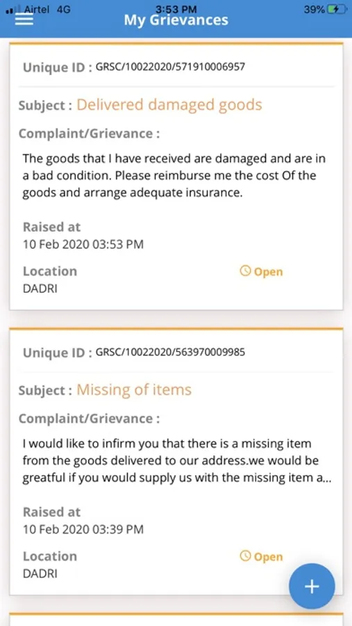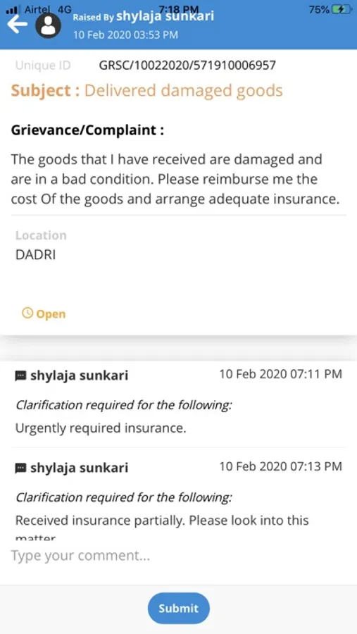 A chat based grievance management system for CONCOR customers. Using the app, CONCOR customers can