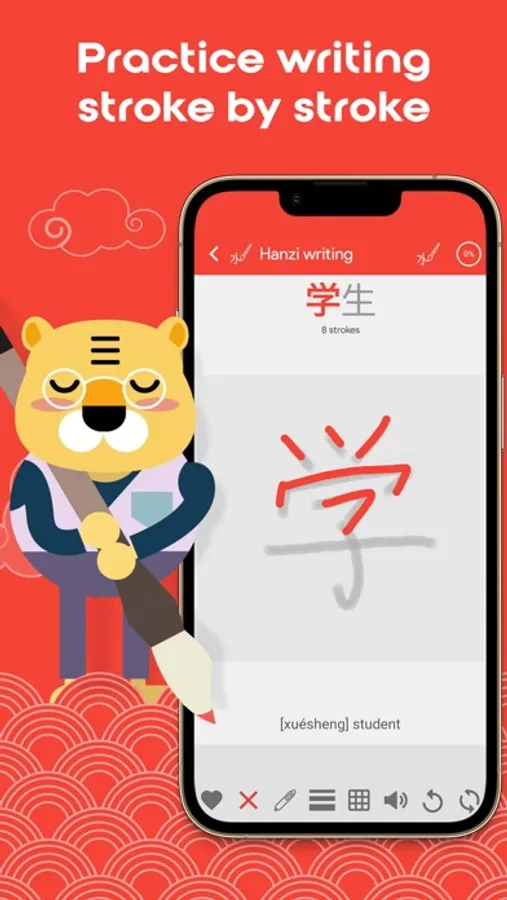 ● You will learn to write: an advanced writing system with automatic correction will allow you to easily learn how to write any Chinese character stroke by stroke.