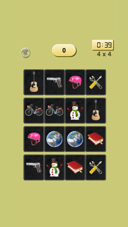 Golden Twins Cards is a card game which is placed face down on a surface and reversed face up in each turn two by two. The objective of the game is to find pairs of equal cards. The game ends when the last pair has been picked up.