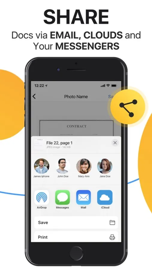 Share any scanned file you have processed or obtained using our scanner app for iPhone. Print your scanned docs using Wi-Fi printers. Send all materials via email swiftly.