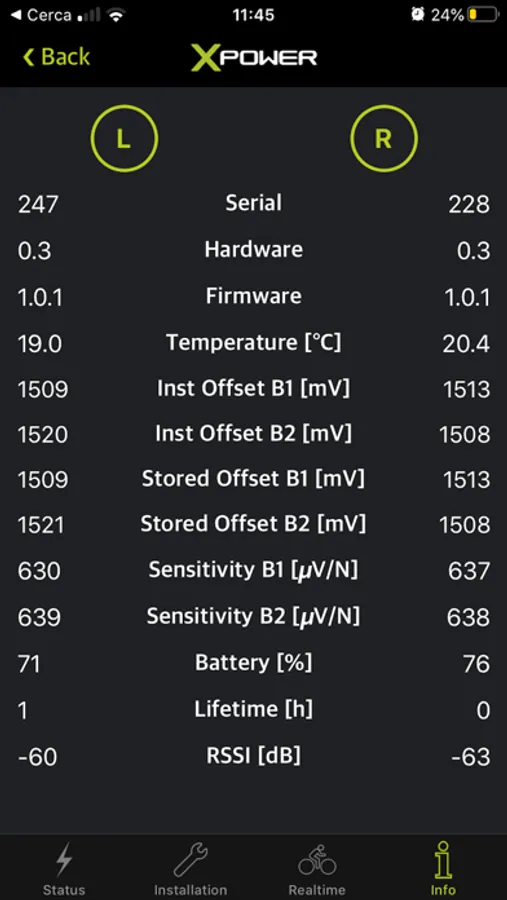 - Pedal status and configuration