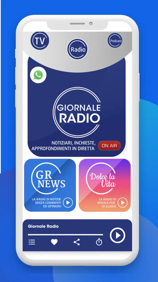 Sono disponibili inoltre, anche sul sito giornaleradio.fm, i nostri 2 canali TV e i nostri Podcast oltre ai contenuti on demand.