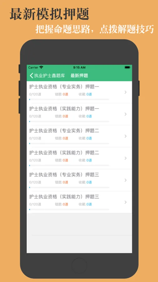 本软件适合于全国执业护士考试,精心准备了考试题库,每一道试题都有答案解析,为考试的提供了充分的复习准备,可随时随地学习练习,有效帮助顺利通过考试,学习知识通过考试必备神器!