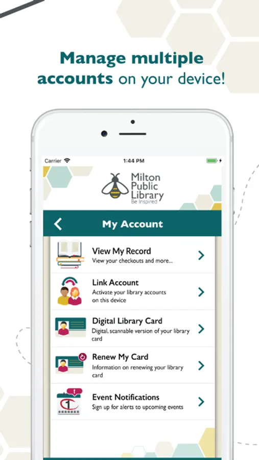 -Add one or more library accounts to your device, allowing you to manage holds, checkouts and more