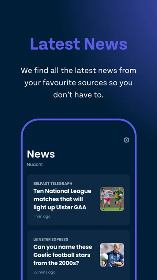 Stay up-to-date with all the latest GAA, LGFA and Camogie news. We provide links to your favourite sources so you can stay informed on the go.
