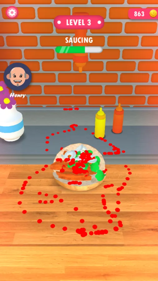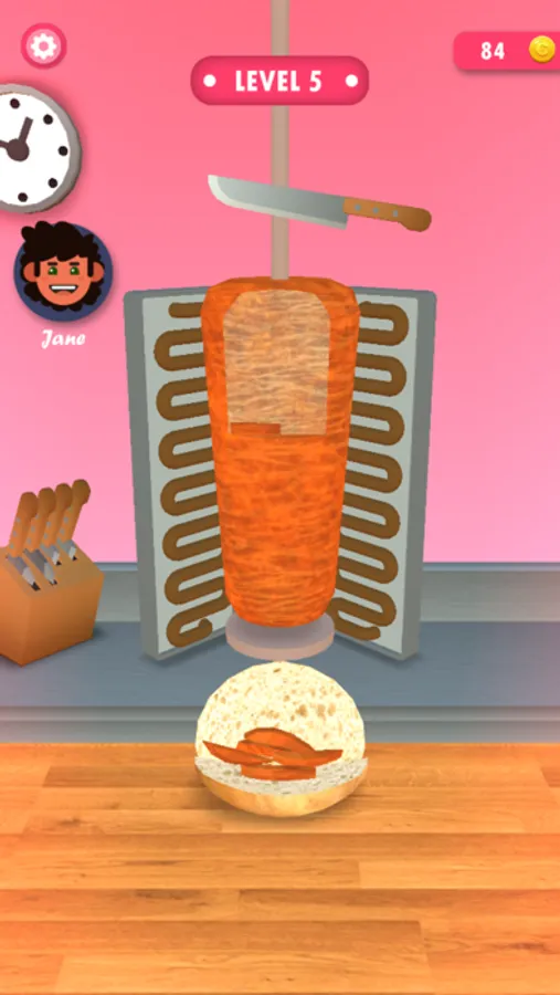 Hold the dispenser button to drop your ingredient and try to match to the model. An extremely relaxing and satisfying game, where you’re the master of kebab.