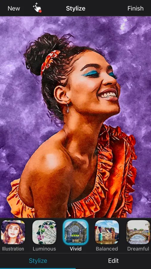 Transform your pictures with one of the 31 watercolor effects available. Save your finished edits, or take it as a starting point as you embark on your artistic journey to perfect that piece of art. Find the ideal style for your personal portraits, daily snapshots or for your travel pictures. The advanced AI technology will blow your minds.
