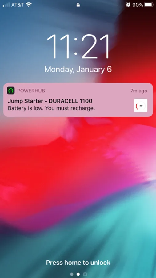 The PowerhHub App wirelessly monitors the battery levels of your jump-starter so you always know exactly how much power is available at a glance. The App will automatically send recharge alerts via push notification before the battery level drops too low for jump-starting. With the PowerHub App you will always know exactly how much charge you have.