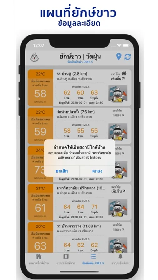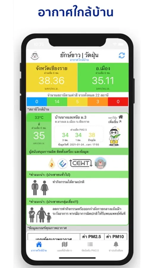 แอพพลิเคชันสำหรับติดตามค่าฝุ่น PM2.5 แบบเรียลไทม์ ที่เชื่อมโยงโครงข่ายสถานีวัดฝุ่นของ โรงเรียนในเครือข่ายในเชียงราย