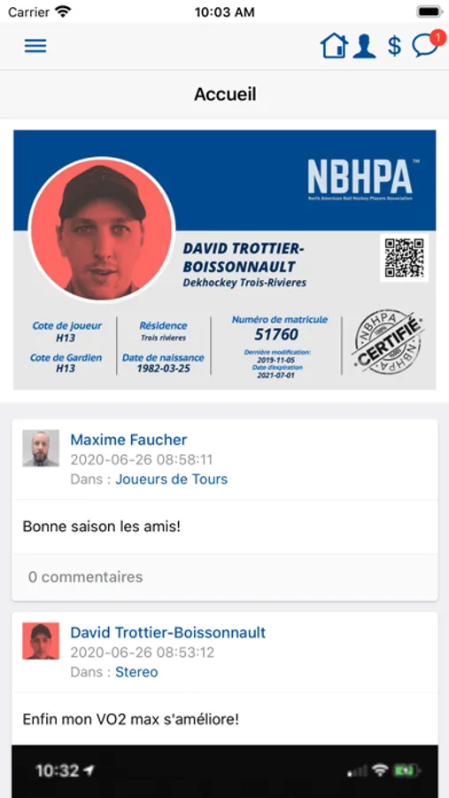 Application pour les joueurs de dekhockey membre de la NBHPA