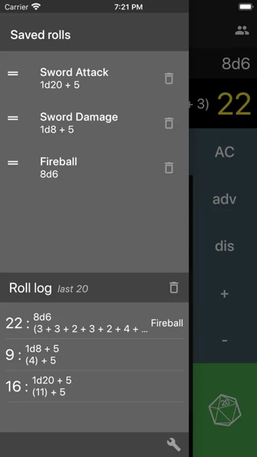Remote D&D Role playing game (RPG) die roller app for one or more players. The DM and each player can view rolls of the other players in real-time over the Internet on their mobile devices. Also great as a stand-alone, feature rich die-roller! Choose from a variety of themes.
