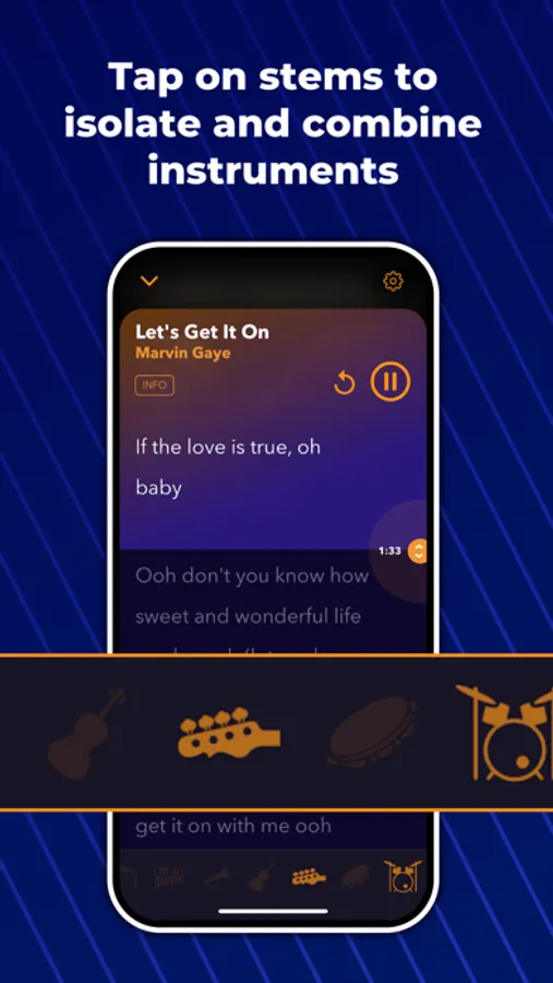 Create your own personal remix on the fly and discover how music is made. Or sing and play along like karaoke for any instrument!