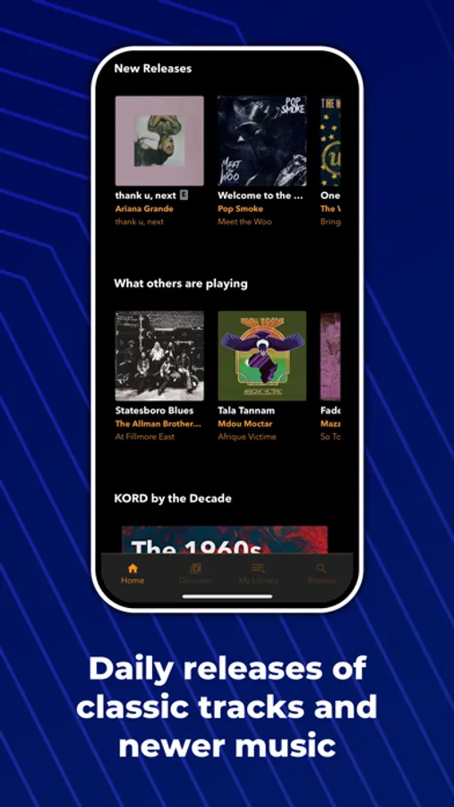 KORD is the only streaming music service curated for humans by humans. Our catalog features original recordings from across genres, labels and eras, and we’re constantly adding new songs to the mix, so check back daily to see — and, most importantly, hear — what’s new!