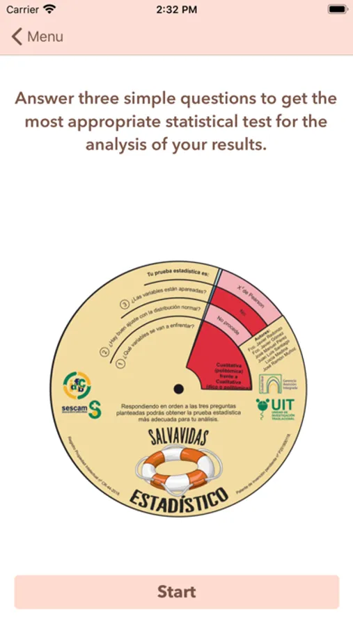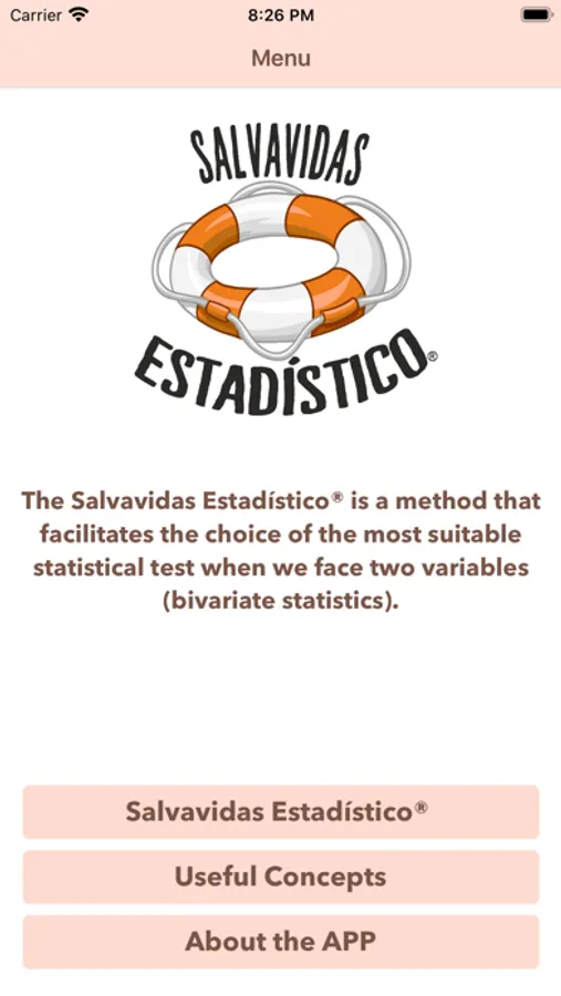 The objective of the physical device "Salvavidas Estadístico" and its app, is to provide a 3-step guide to carry out a bivariate analysis independently, applying the statistical concepts required in the different fields of science. Through the choice of the confrontation of two variables and the evaluation of their characteristics through 3 questions, the test that best suits each situation within a research study will be suggested, specifically in the analysis of results. Three questions are presented: