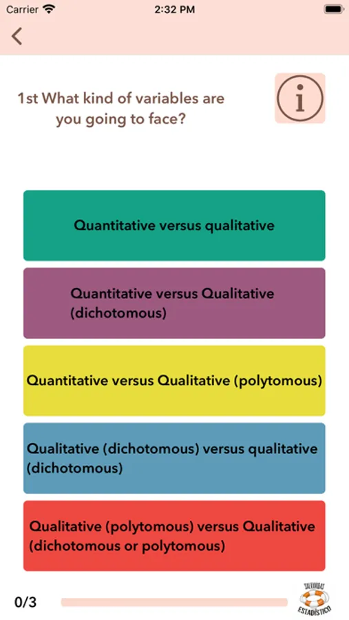 Determine the most appropriate statistical test for analyzing your results from a biomedical research or another field of science by answering three simple questions. This app can be used in any statistical analysis situation including two variables (bivariate statistics). It is especially useful in the field of research as well as any branch of science where this type of statistical analysis is required.