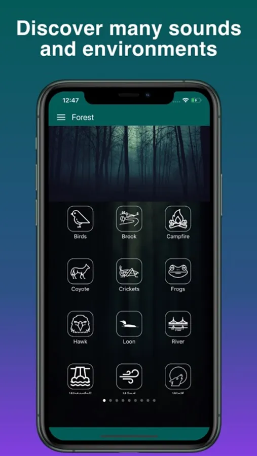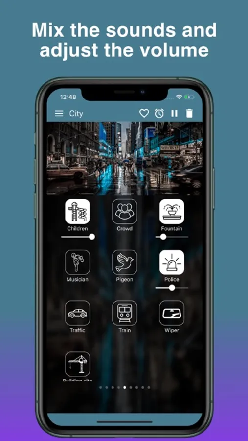 Enjoy a variety of relaxing sounds & relax melodies divided into different environments. You can mix many relaxing sounds and adjust the volume of each of them to create your own relaxed ambience based on your mood.