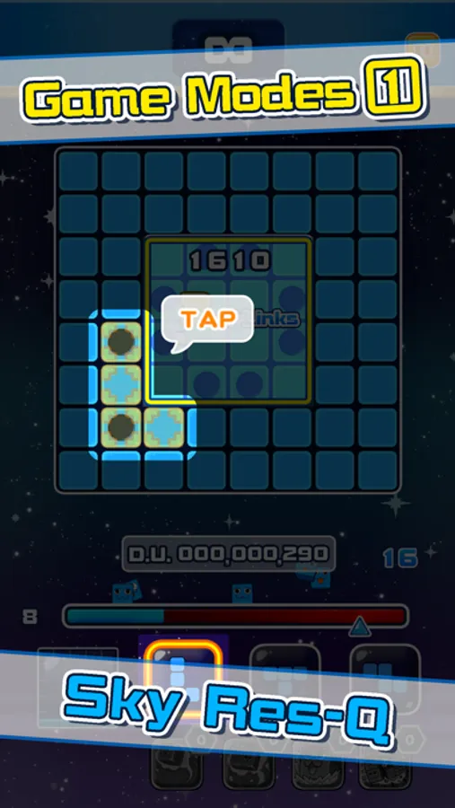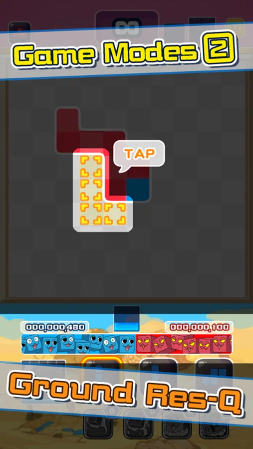 There are four game modes in this puzzle game. Try to clear the stage before time is up by lining up Tetra-Qs into rectangles to gather points and stop the enemy characters.