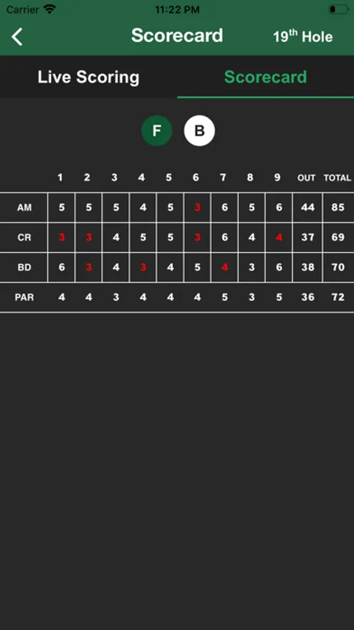 Enjoy the simplicity of live scoring. Just add in the scores as you go to each hole. Once the game is over, Golf Bets provides the final scores within seconds.