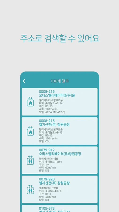 아이콘을 통해 승강기의 종류를 쉽게 확인할 수 있습니다.