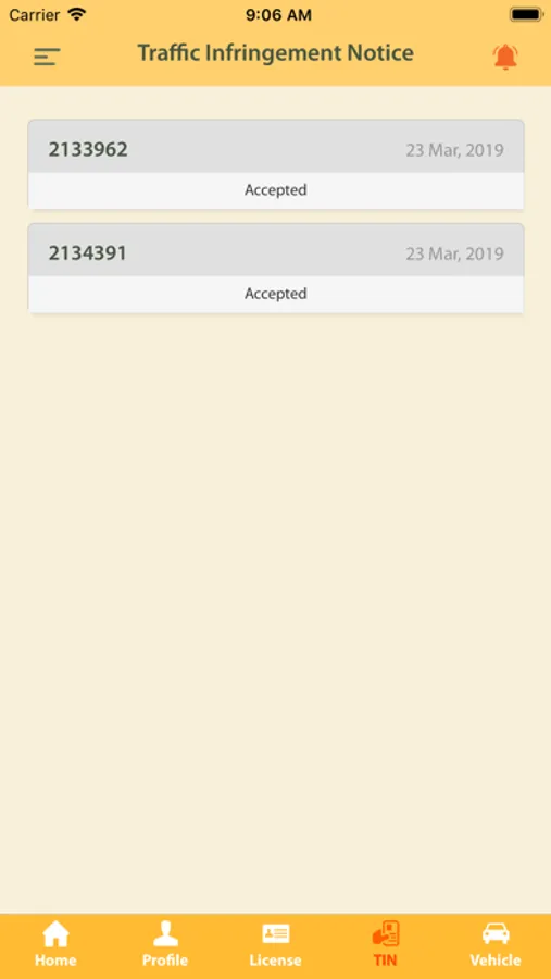 • View Tin Status (E.g. Accepted, Current, Convicted etc.)
