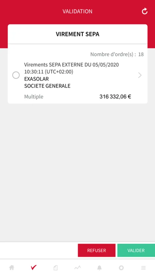 La validation des opérations via Smartphone doit être paramétrée sous BFCNET ENTREPRISE par l’administrateur. L’utilisateur Mobile reçoit alors une notification lui indiquant qu’une opération est à valider.
