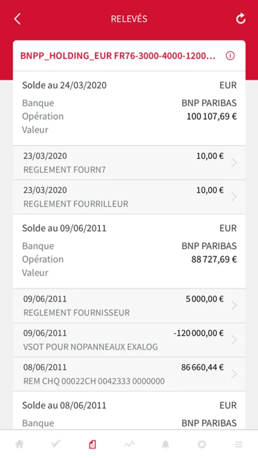 Les données affichées dans BFCNET Entreprise Mobile sont synchronisées avec l'application web BFCNET Entreprise.