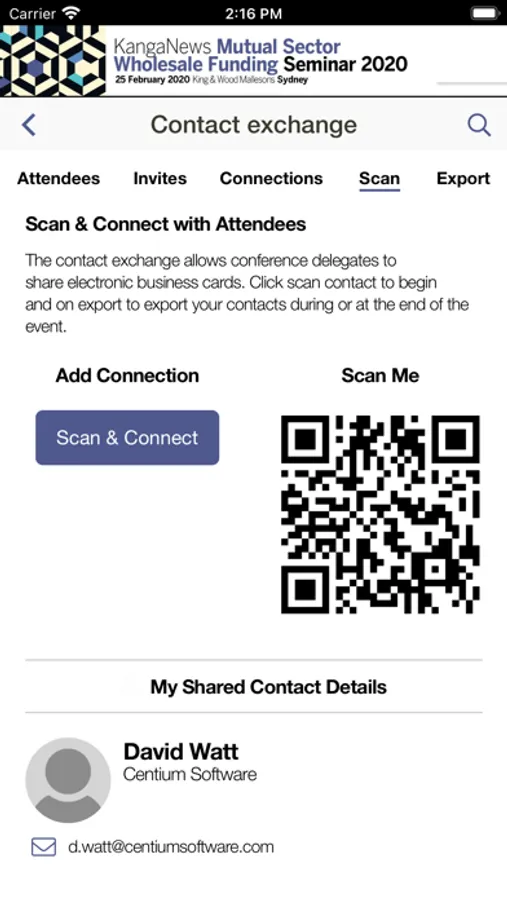 • The ability to chat with other event attendees within the app and to exchange contact details