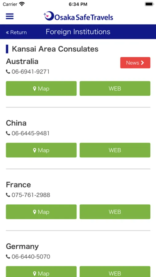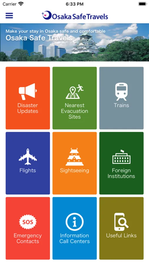 Provided by the Osaka Prefectural Government, this free app provides disaster-related information on disaster notifications, evacuation sites, railway and airline status, and emergency contacts in a multitude of languages, allowing foreign travelers to enjoy a safe and pleasant stay in Osaka.