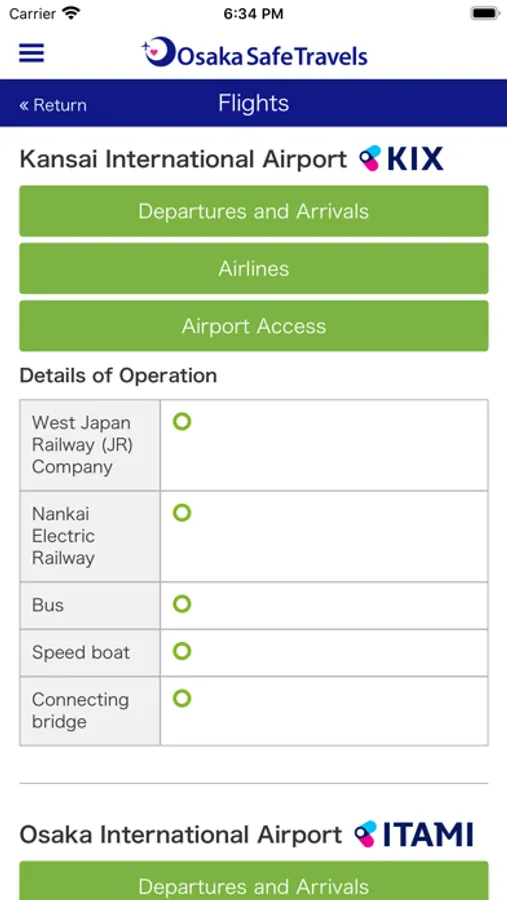 ● Kansai International Airport flight information, as well as updates on different means of transportation to the airport.