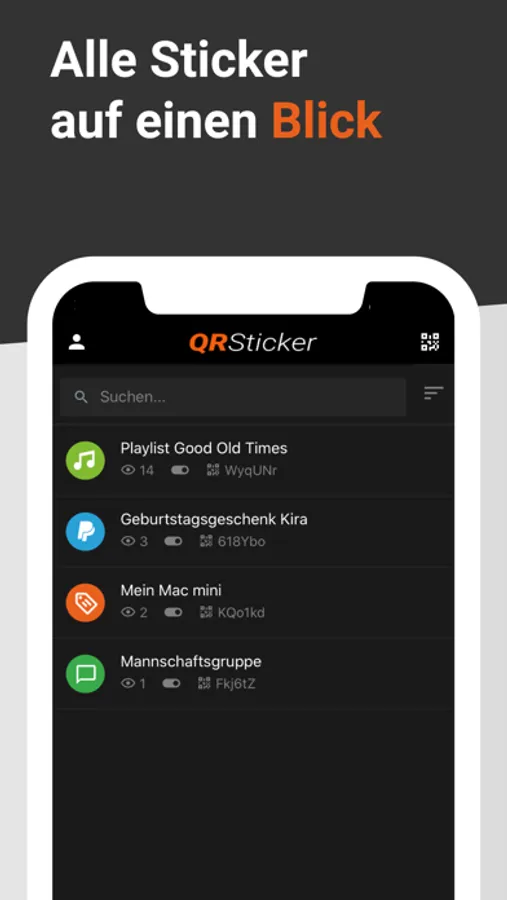 3. Einen oder mehrere QRSticker per Scan über die App mit dem Benutzerkonto verknüpfen