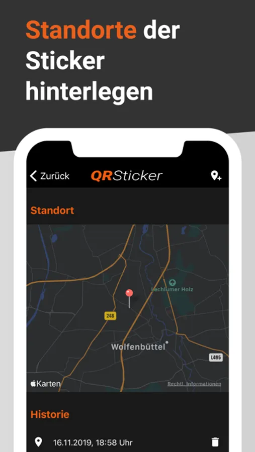 • Kartenansicht zur Ortung von Stickern per GPS