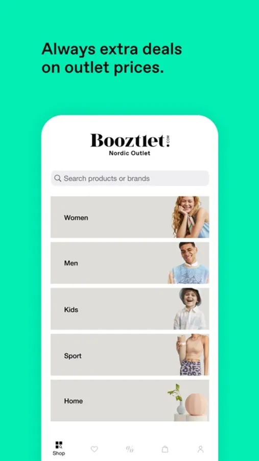 Deals, deals, deals! More great deals than you have ever dreamt of in one place. Daily deals makes it easier to find your special bargain. Download the app and start scrolling - Booztlet, your Nordic Outlet. Our app is the perfect tool for finding outlet prices on cheap designer wear. And by outlet prices, we mean seriously discounted. We're talking ""Holy cow, I can't believe I just got this for so little!"" discounted.